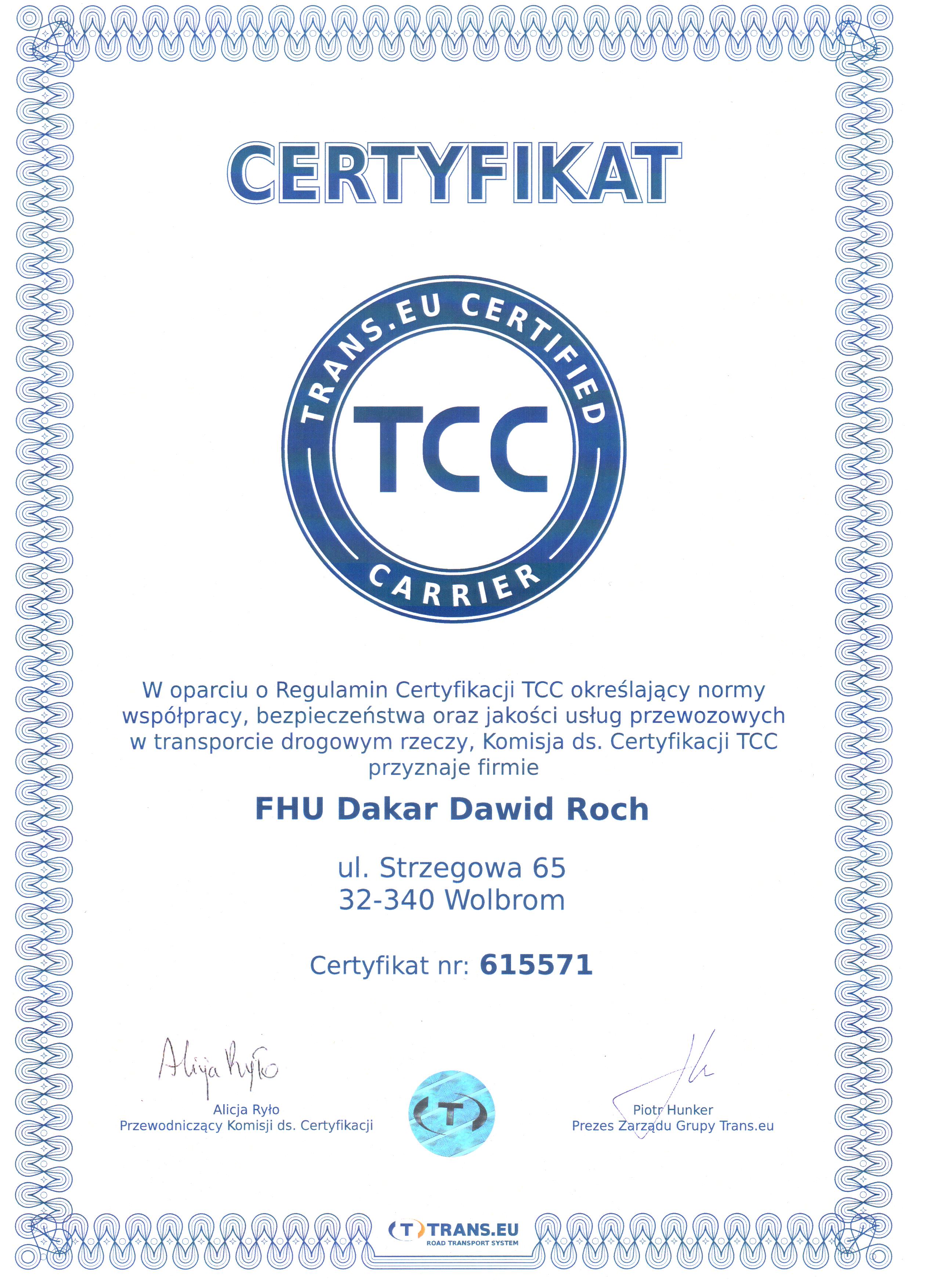 "Trans.eu Certified Carrier"